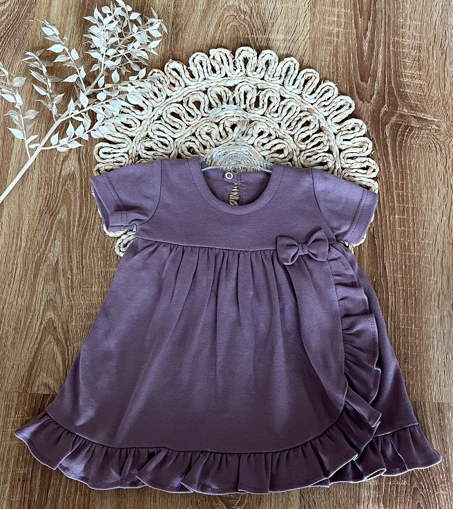Dojčenské šaty s volánikmi, kr. rukáv, Mamatti, Puntík, slivková, veľ. 74