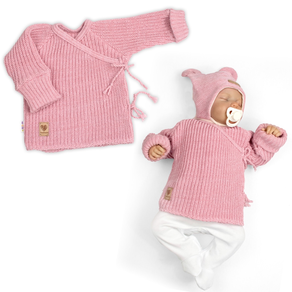 Dojčenský svetrík, rastúci, na zaväzovanie na boku – rúžový, veľ. 62/68