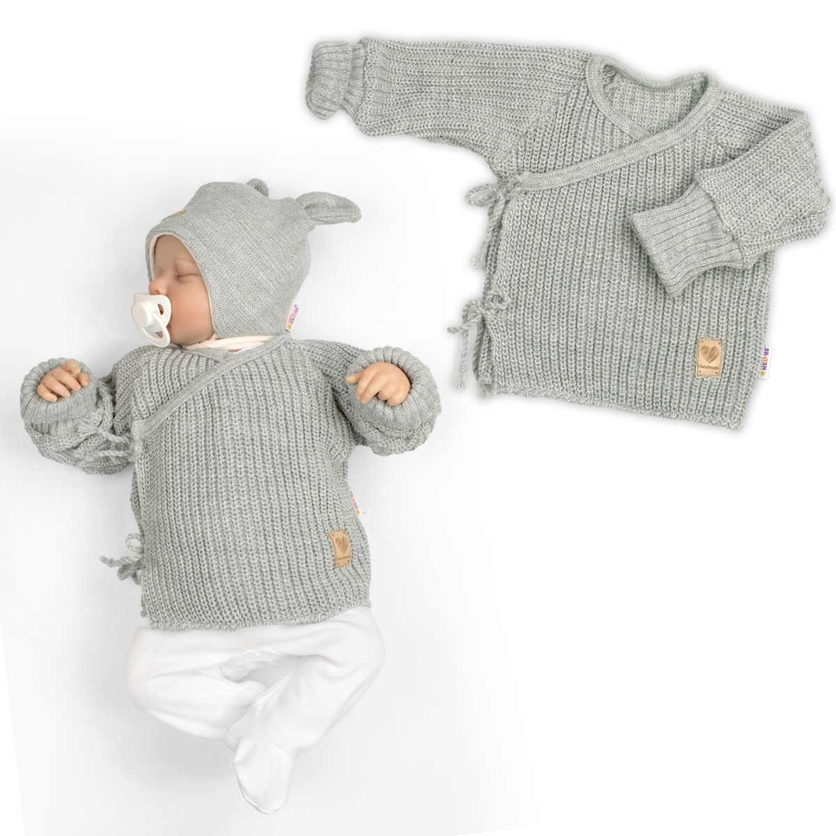 Dojčenský svetrík, rastúci, na zaväzovanie na boku – šedý, 62/68