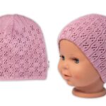 Dvojvrstvová ažúrková čiapka, bavlna, Baby Nellys – púdrová, veľ. 104/110