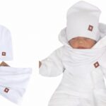Dvojvrstvová rebrovaná čiapočka + nákrčník, biela, veľ. 68/74