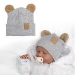 Dvojvrstvová rebrovaná čiapočka s uškami boucle medvedík – šedý melír