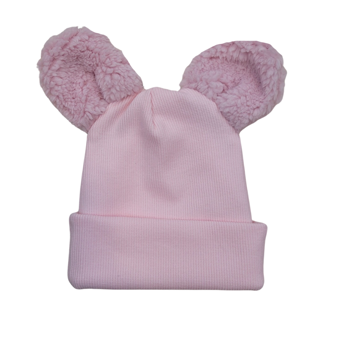 Dvojvrstvová rebrovaná čiapočka s uškami medvedík – růžová