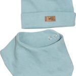 Dvojvrstvová rebrovaná čiapočka s uškami + šatka, Lovely One, morská modrá, veľ. 80/86