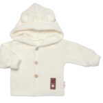 Elegantný pletený svetrík s gombíkmi a kapucňou s uškami Baby Nellys, ecru
