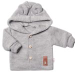 Elegantný pletený svetrík s gombíkmi a kapucňou s uškami Baby Nellys, sivý, veľ. 80