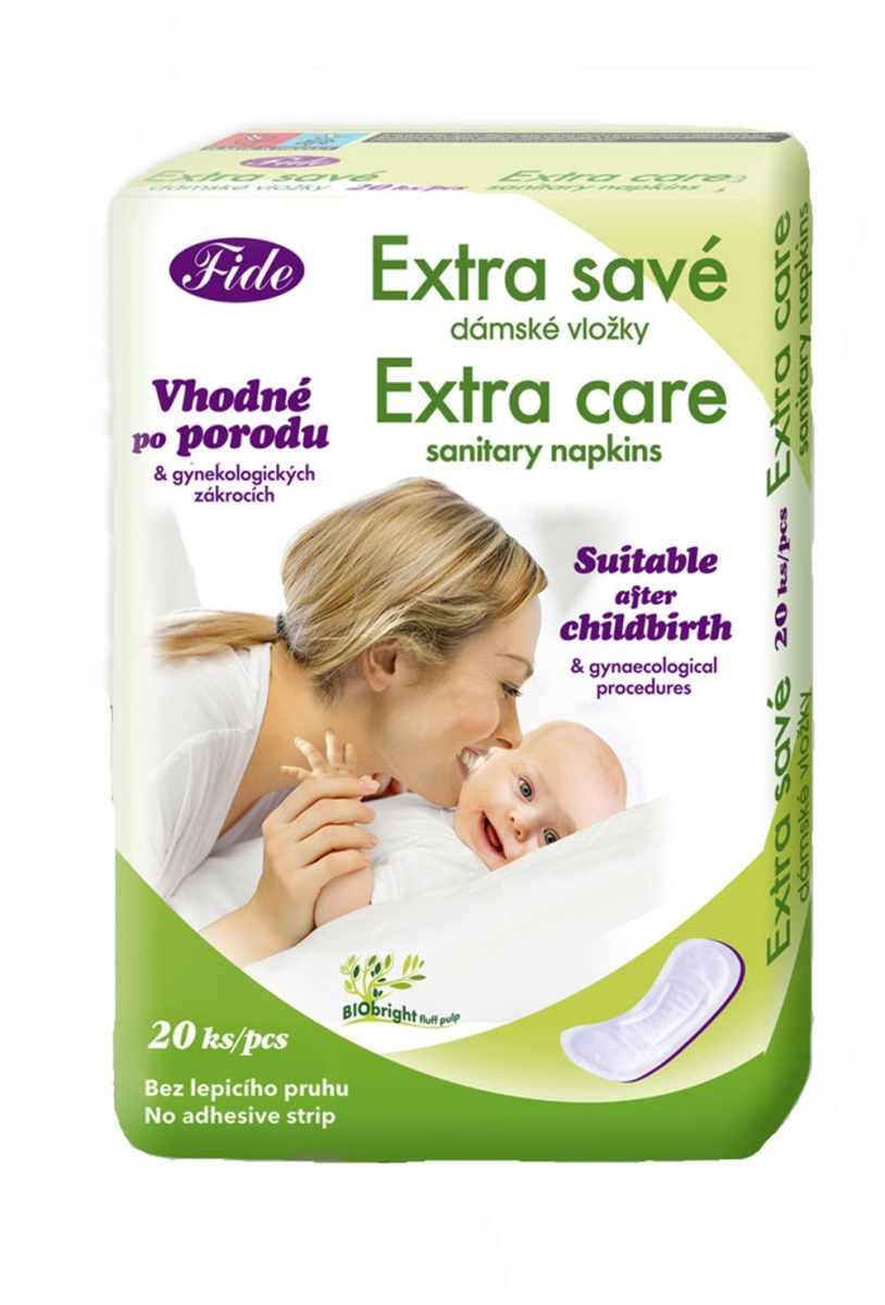 Popôrodné vložky FIDE. Pôrodnícke vložky pre hygienu v šestonedelí. Extra savé. Rozmer: 7x25cm. Balenie obsahuje 20ks.