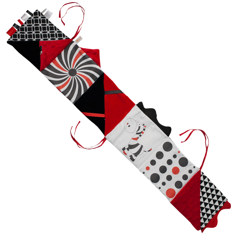 Roztomilá hračka – textilná knižka. Hračka rozvíja zmyslové vnímanie dieťaťa a podnecuje jeho fantáziu. Mazlík šuští. Je tu aj zrkadielko Ideálna hračka pre deti. Mazlík / hračka je vyrobená z mäkké plyšové látky a bavlny. Určená pre deti od 0 m +. Rozmer – cca 85 cm x 16,5 cm. (Merané v najdlhších miestach) Atest CE – bezpečná hračka. Vyrobená v EÚ. Upozornenie: Výrobca môže obmieňať farby na niektorých častiach hračky.