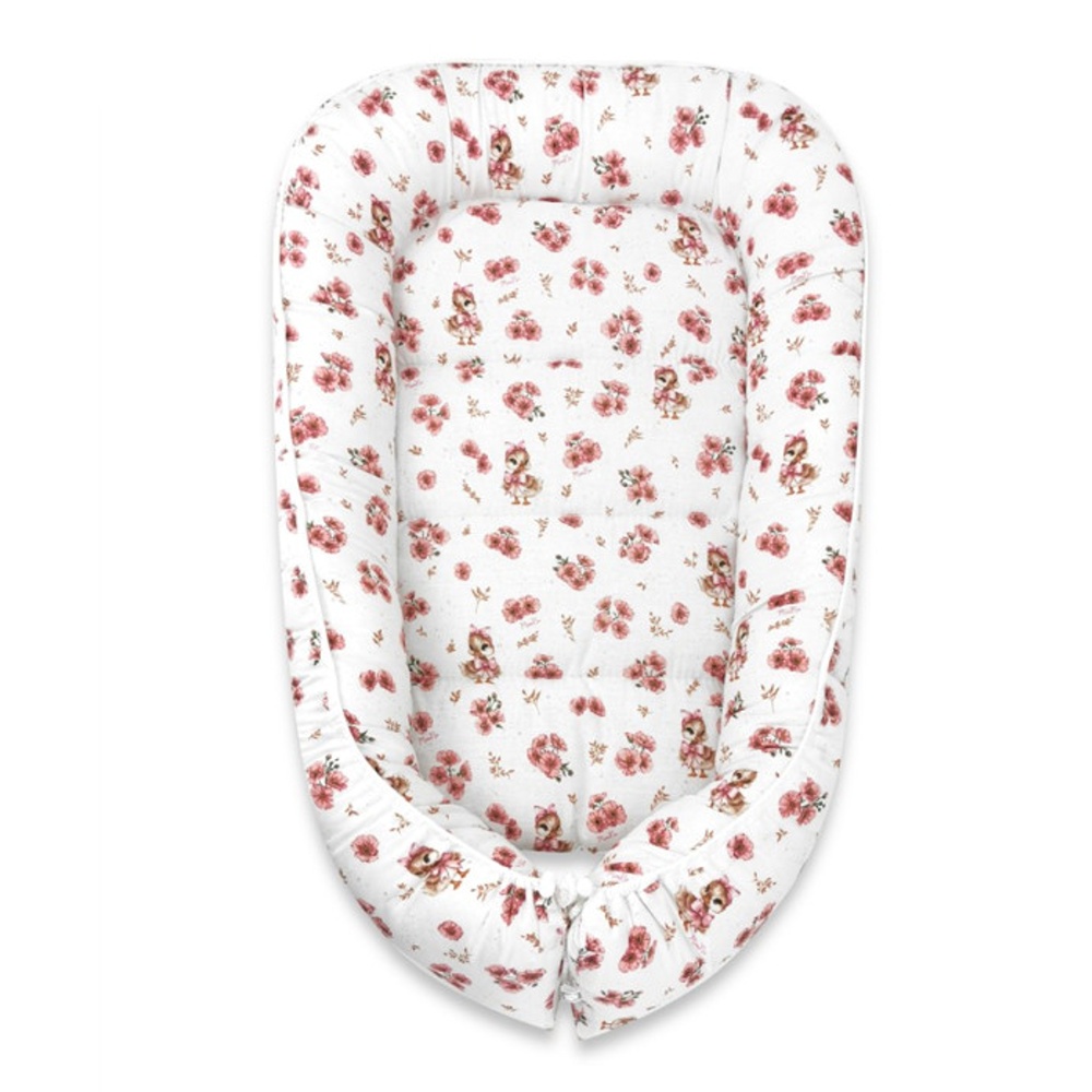 Hniezdočko, kokon pre bábätko, bavlna, Kačičky – biela, púdrovo ružová