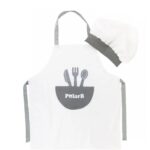 Kuchárska sada, zástera + čiapka Kuchtík, biela/sivá