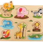 Detská vkladačka z dreva s motívmi obrázkov zvierat.