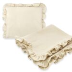 Táto sada zahŕňa mäkučkú deku s volánikom a vankúšik s obliečkou na zips, oboje vyrobené z prvotriedneho bavlneného mušelínu.