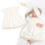 Bavlnené šatočky s čelenkou Baby Nellys — elegantný komplet pre bábätká | Luxusné Šaty s čipkou.