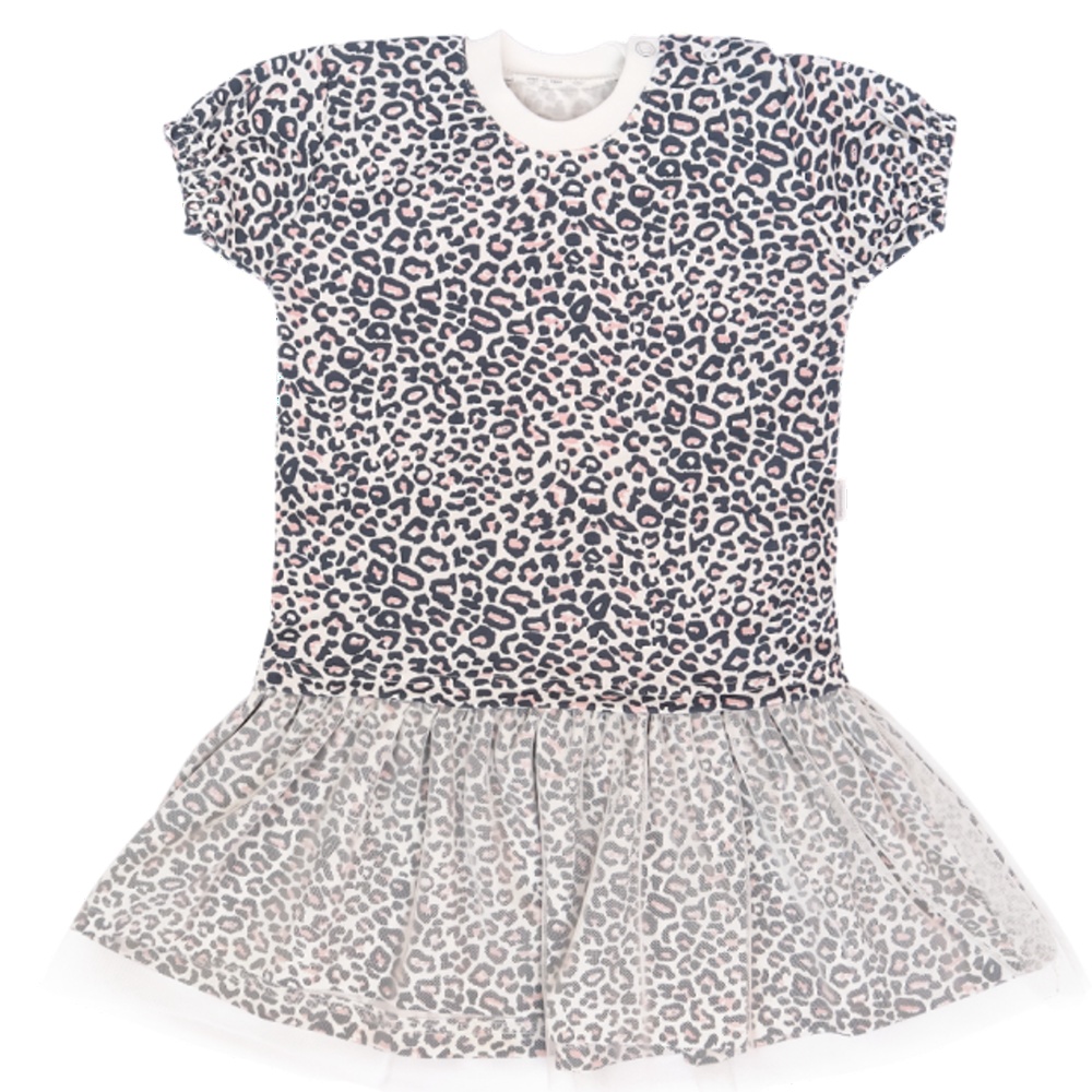 Mamatti Dojčenské šaty s tylom, kr. rukáv, Gepardík, biele vzorované