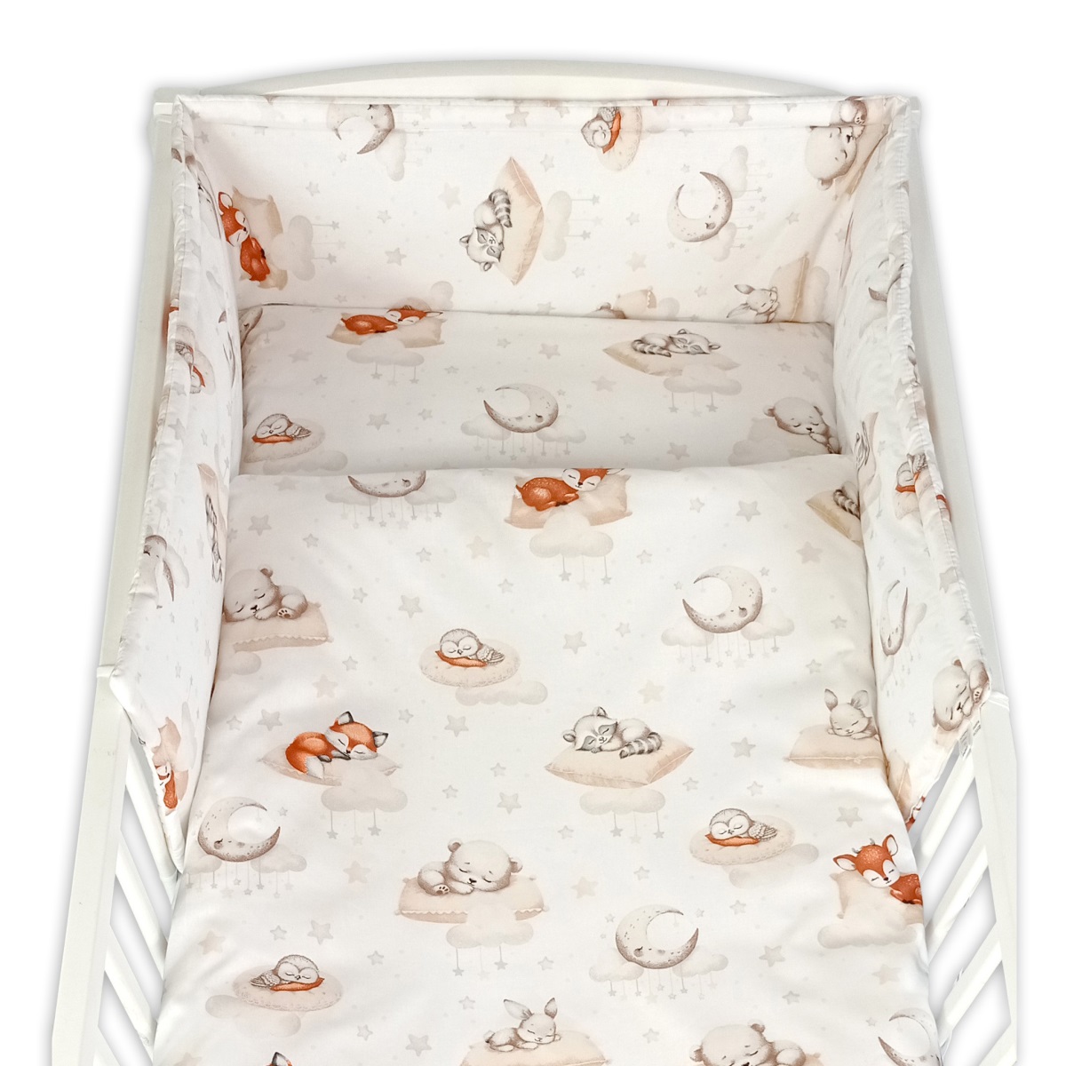 135×100 – obliečky na perinku 135x100cm, obliečky na vankúšik 40x60cm, mantinel 60x60x60cm – na postieľku 120x60cm.