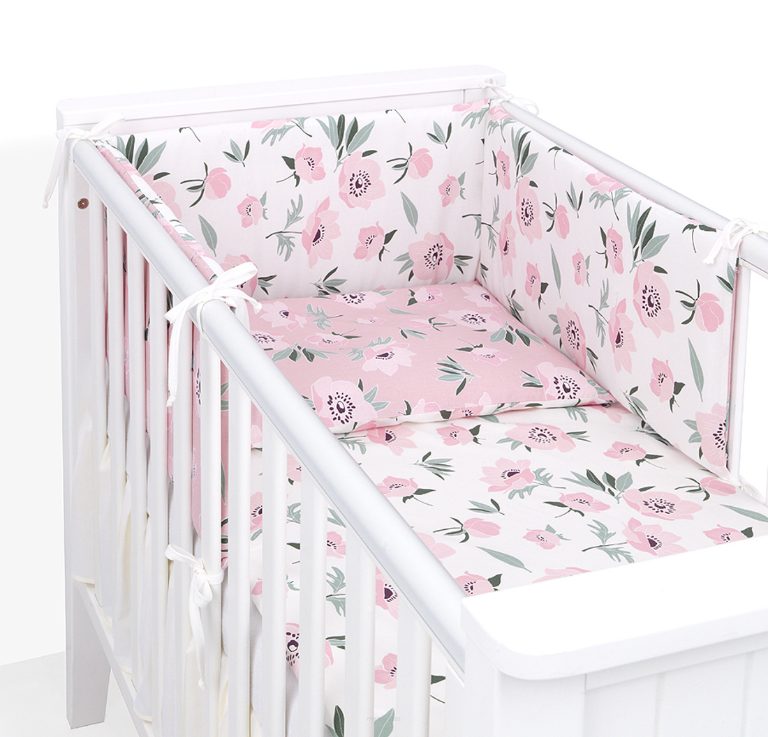 Mantinel s obliečkami do postieľky, 3D sada Bavlna, Ruža, púdrová/ecru