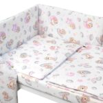 135×100 – obliečky na perinku 135x100cm, obliečky na vankúšik 40×60 cm, mantinel 60x60x60cm – na postieľku 120x60cm.