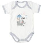 MBaby Bavlnené body s krátkym rukávom, Sloníča Hello, bielo/sivé, veľ. 86
