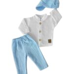 Mušelínová košeľa, nohavice + čiapky, 3D sada, Boy Z&Z, biela/modrá