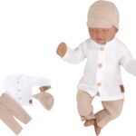 Mušelínová košeľa, nohavice + čiapky, 3D sada, Boy Z&Z, biela/piesková