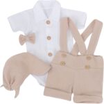 Mušelínové kraťasy s láclom, bodýčko, čiapočka, motýlik 4D sada, Z&Z, piesková/biela