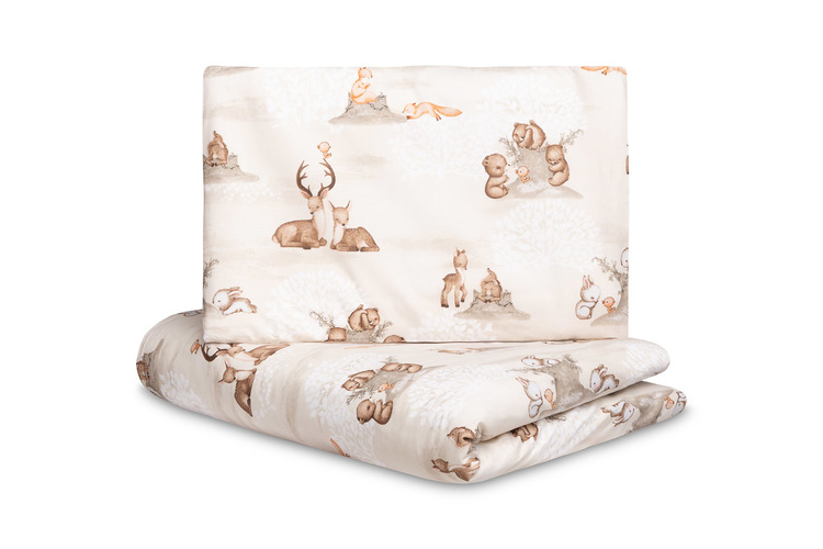 Mušelínové obliečky do postieľky 135×100, Zábava v lese, béžové