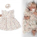 Mušelínové šatôčky + čelenka 2-dielna sada Lúčne kvietky, Baby Nellys, smotanové, veľ. 104