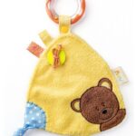 Jemná textilná hračka s odnímateľným hryzátkom.
