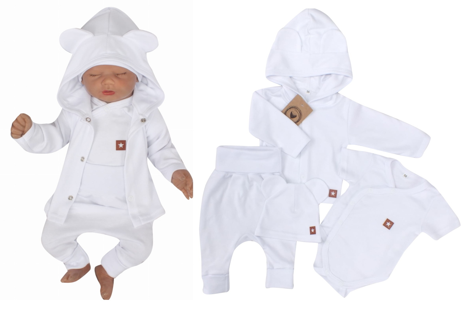 Novorodenecká sada 4D, body kr. rukáv, tepláčiky, kabátik a čiapočka Z&Z, biela, veľ. 62