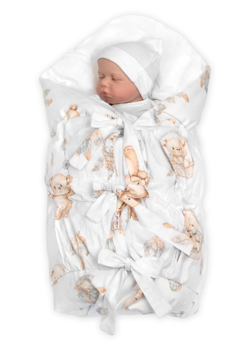 Obliečka, poťah bavlna na retro zavinovačku, Malý Medvedík a pierko – biela, béžová