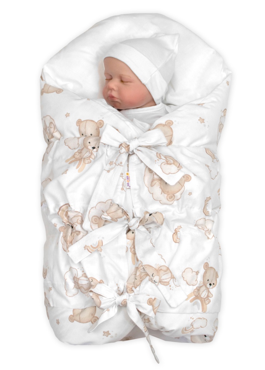 Obliečka, poťah bavlna na retro zavinovačku MAXI, 85x85cm Malý Medvedík – biela, béžová