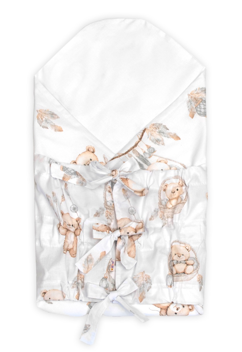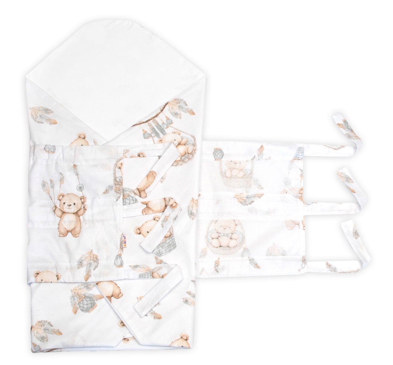 Obliečka, poťah bavlna na retro zavinovačku, Malý Medvedík a pierko – biela, béžová
