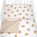 Obliečky do postieľky, bavlna, 2D sada, Míša – biela s potlačou