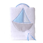 Obojstranná chlpáčková dečka s vyšívkou 75 x 90 cm, Lodička, biela/modrá