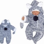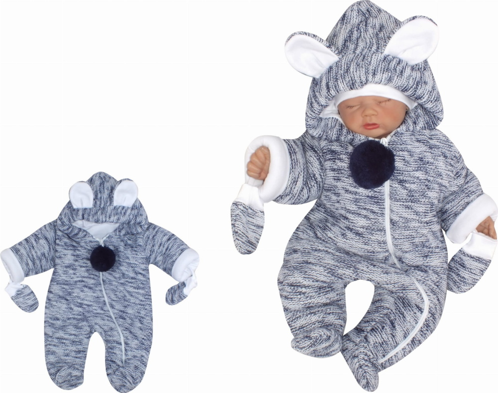 Oteplená pletená kombinéza s kapucňou a uškami + rukavičky – granát. vel. 68