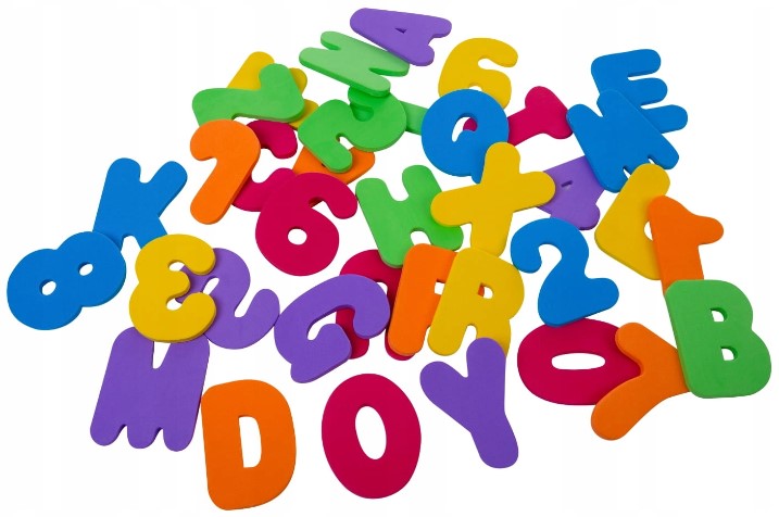 Penové hračky do kúpeľa, vodolepky – písmená a číslice 36 ks