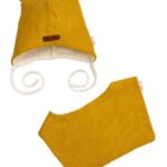 Pletená čiapka s bavlnenou podšívkou a šatkou 2v1, Teddy Hand made – horčicová, 80/86