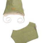 Pletená čiapka s bavlnenou podšívkou a šatkou 2v1, Teddy Hand made – oliva, 68/74