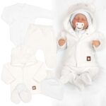 Sada do pôrodnice 5D, body, polodupačky, kabátik, čiapočka, rukavičky – marhuľa, veľ.62