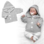 Pletený svetrík s kapucňou a gombíkmi Made with Love, šedý, veľ. 68/74