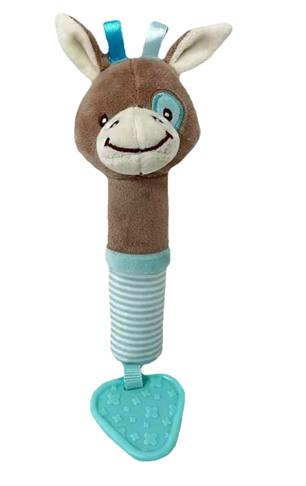 Plyšová hračka s pískatkom a hryzátkom Somárik, 17 cm – modrá, hnedá