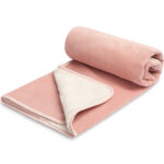 Plyšová obojstranná deka 80×100 cm, púdrovo ružová/krémová