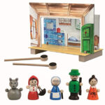 Magnetické divadlo Červená Karkulka. Divadlo obsahuje obojstranne maľované kulisy les-chalúpka. Deti si môžu odohrať klasickú rozprávku pomocou drevených tyčiek a figúrok s magnetom. Výrobok je nevhodný pre deti do 3 rokov. Rozmery balenia Š x V x H – 335 × 230 × 35 mm.