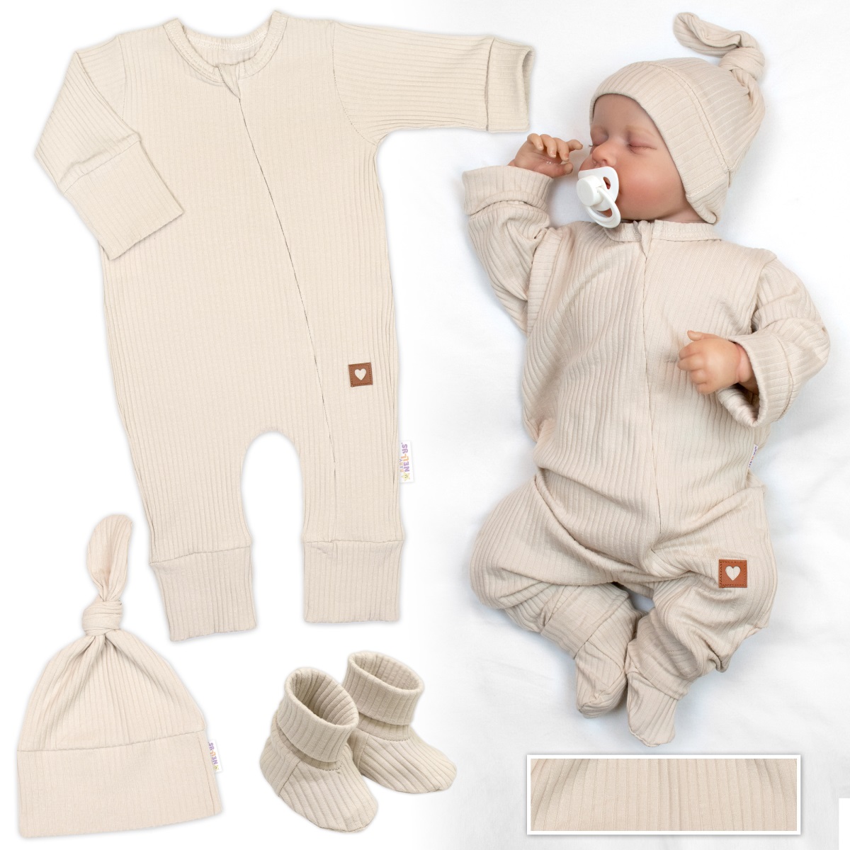 Rastúci rebrovaný overálek, čiapočka a topánočky, 3D, Nature – sv. béžová