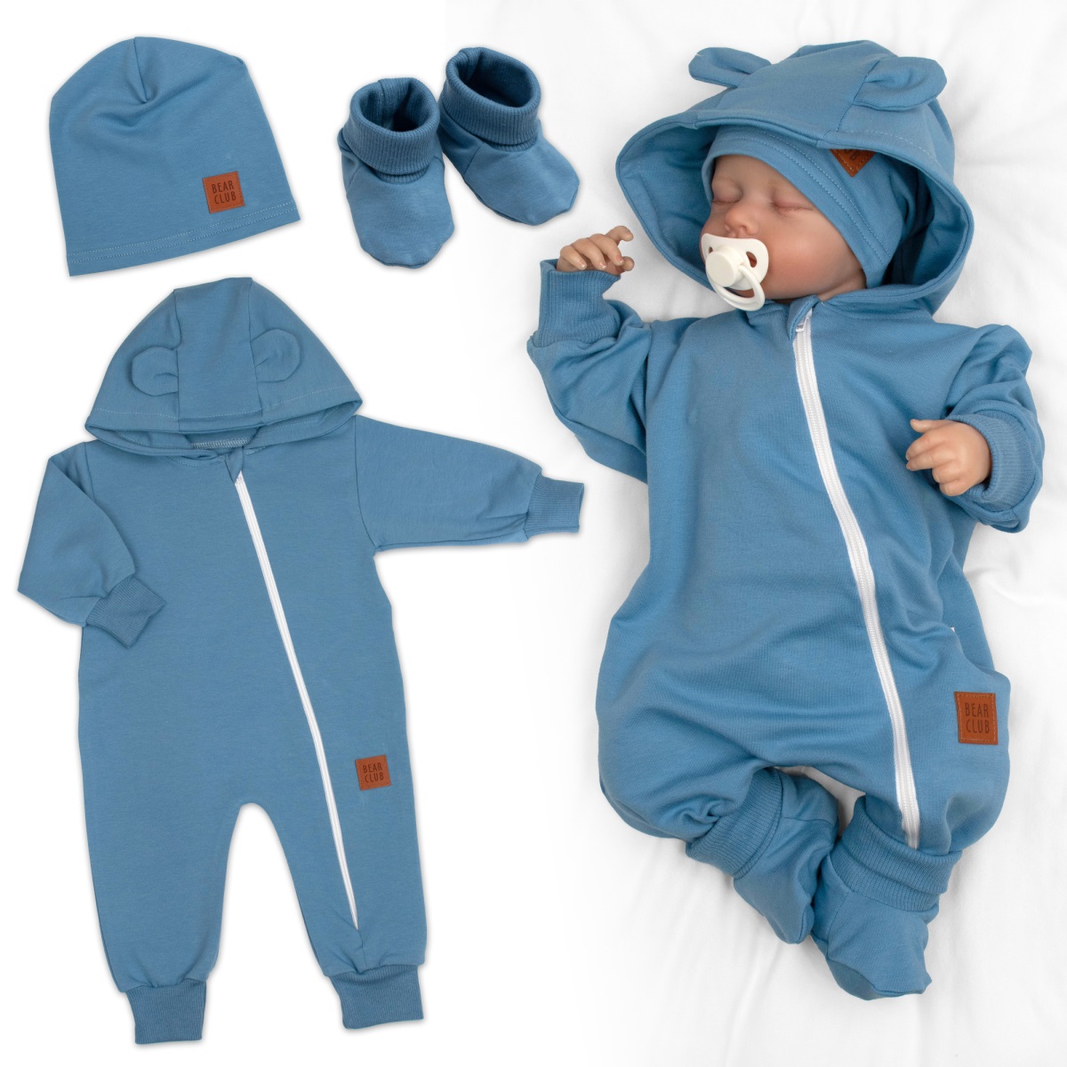 Rastúci teplákový overal pre bábätko, čiapky, topánky, 3D, Nature – tm. modrý, 68/74