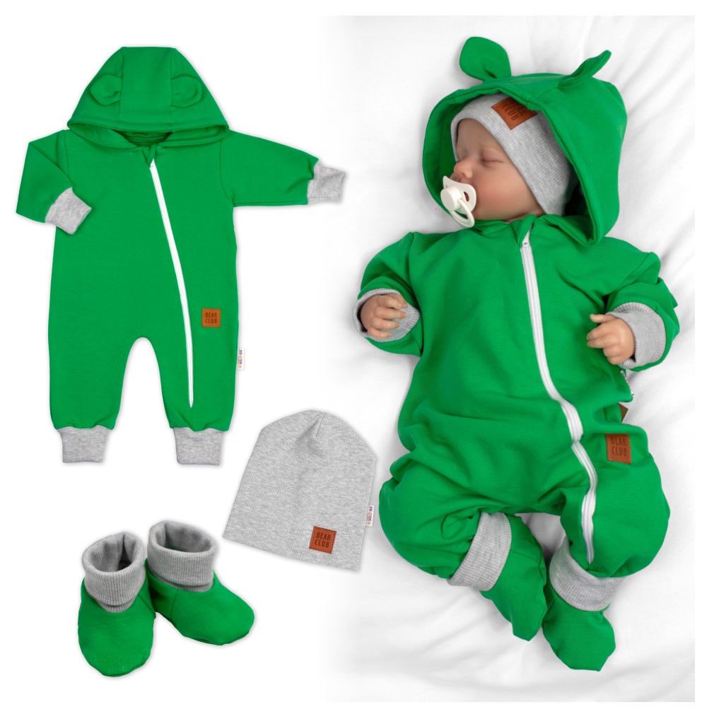 Rastúci teplákový overal pre bábätko, čiapky, topánky, 3D, Nature – zelený