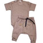 Rebrovaná súprava body kr. rukáv + tepláčky Magic, bavlna, čokoládová, veľ. 62