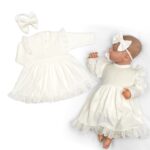 Rebrované sukničkobody + čelenka Paula, dl. rukáv, bavlna, 2D sada, smotanové