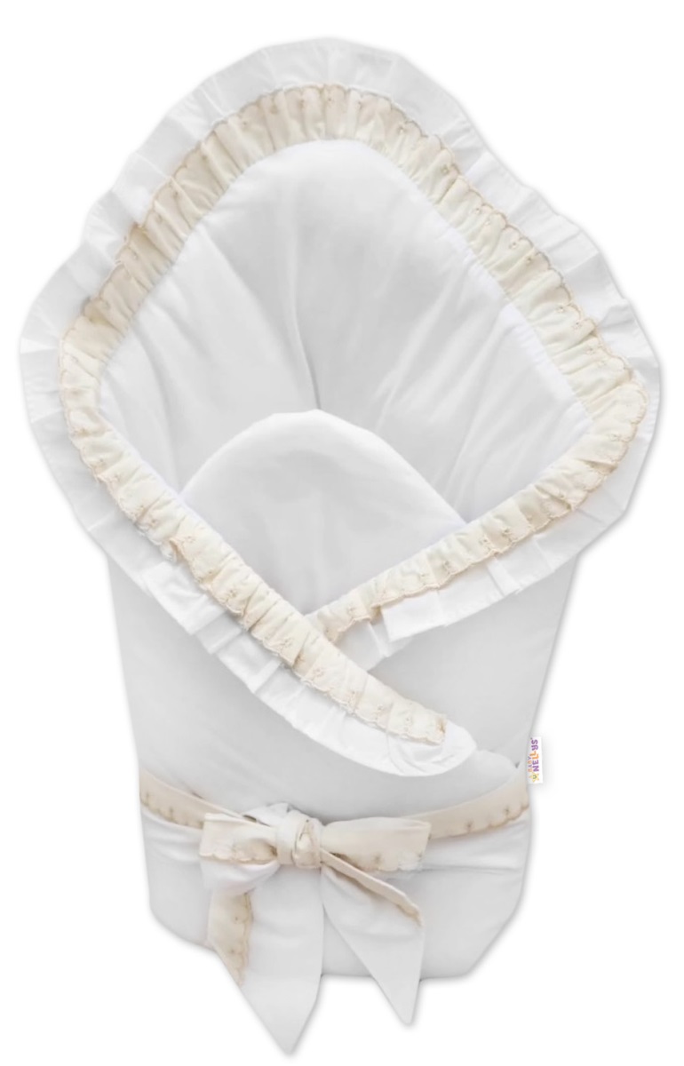 Rýchlozavinovačka s volánikmi, vyšívkou a stuhou, biela