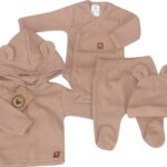 Sada do pôrodnice 4D, rebrovaná, body, polodupačky, kabátik a čiapočka, béžová